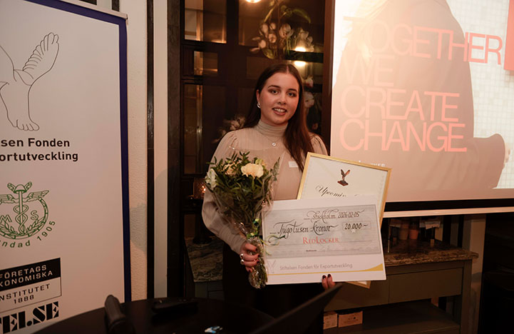 Clara Lidman, medgrundare Redlocker Från UF-dröm :ll europeisk framgång - RedLocker visar hur mod, innovation och jämställdhet kan bli en exportkraft och gör mensskydd lika självklart som WiFi säger Fondens ordförande Jesper Öhrn. Pressrelease Fotograf: Niklas Palmklint